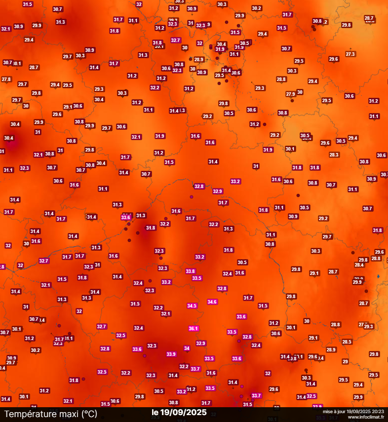 - Bourges : 36.4°C le 04/09/2023 - 32.8°C cet après-midi