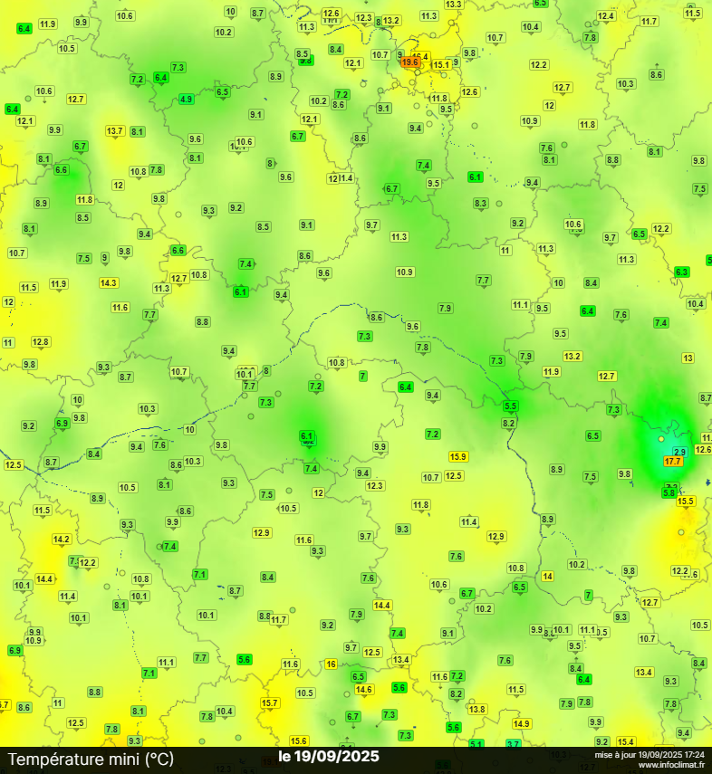 - Températures minimales du vendredi 19 septembre 2025 dans le Centre – Val de Loire | Source : Infoclimat.fr