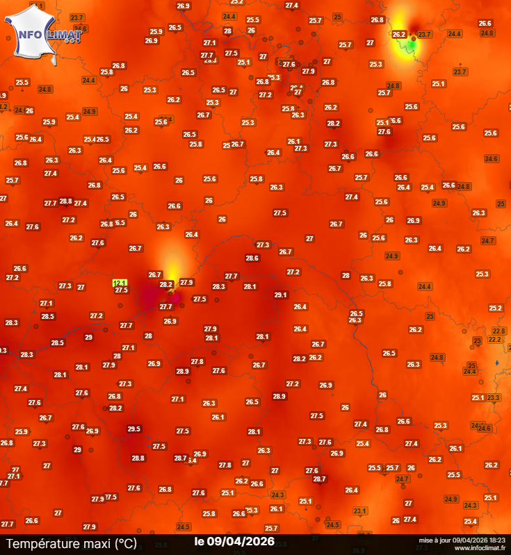 Cartographie des températures maximales du 9 avril 2026