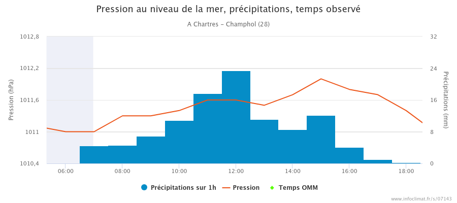 - Chartres (28) : 96.0 mm, nouveau record absolu (ancien record du 8 juillet 1927 : 67 mm)