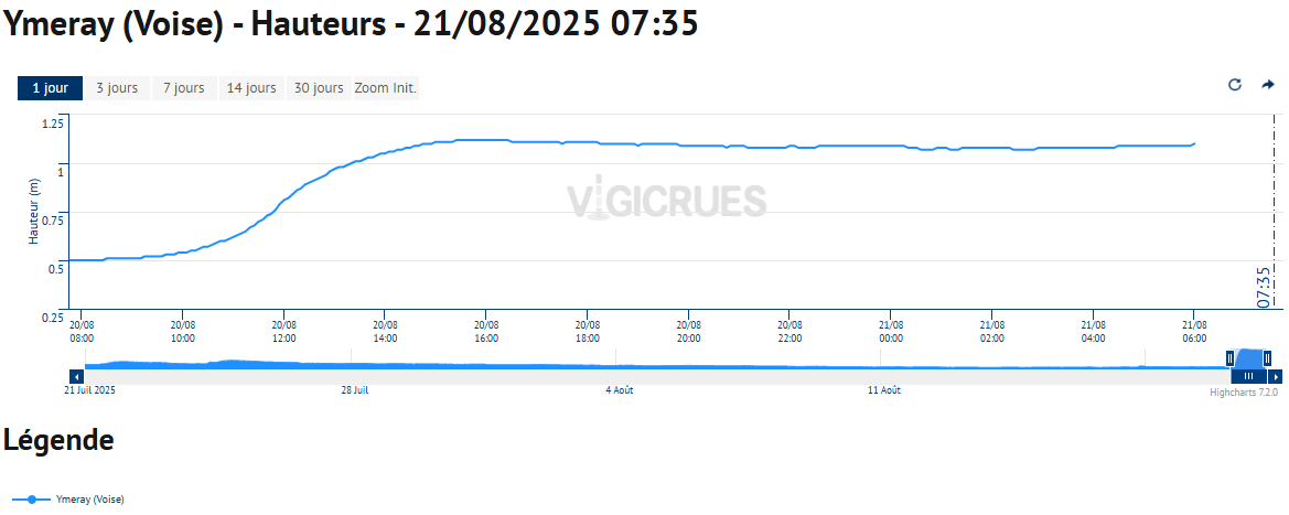 Hauteur de la Voise à Ymeray (28) le 21 août 2025 - Vigicrue.gouv.fr