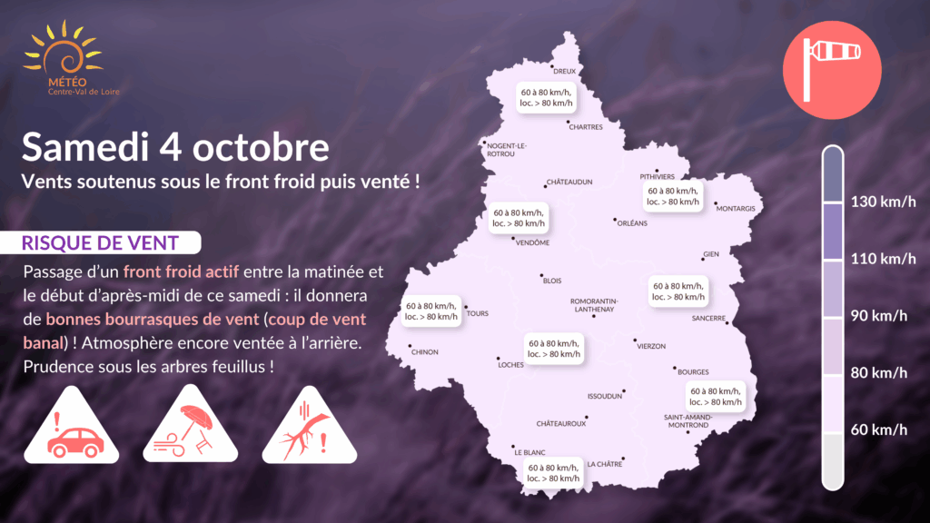Carte risque venteux du 4 octobre 2025 (copyright : Association Météo Centre - Val de Loire). Cliquer sur l'image pour l'agrandir.